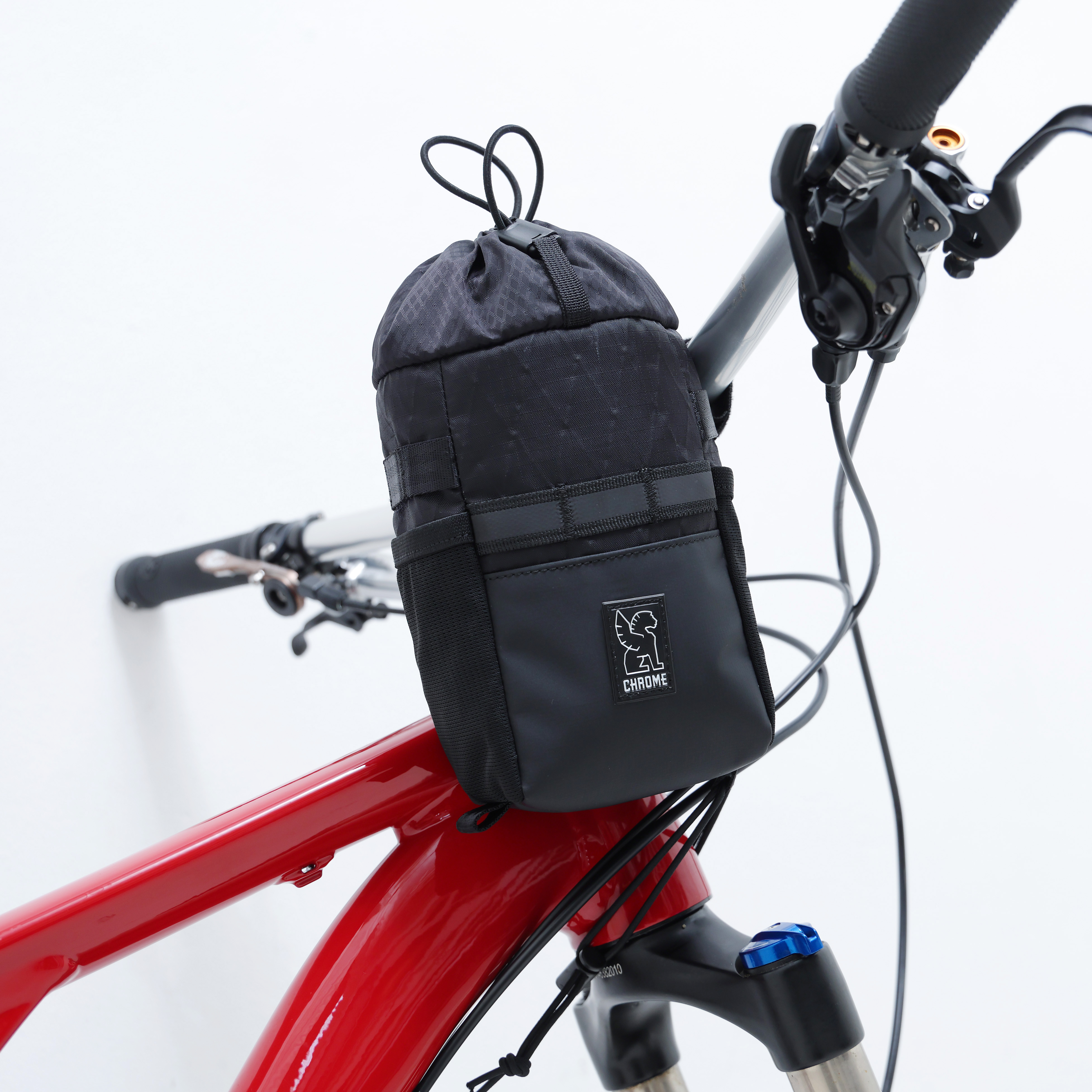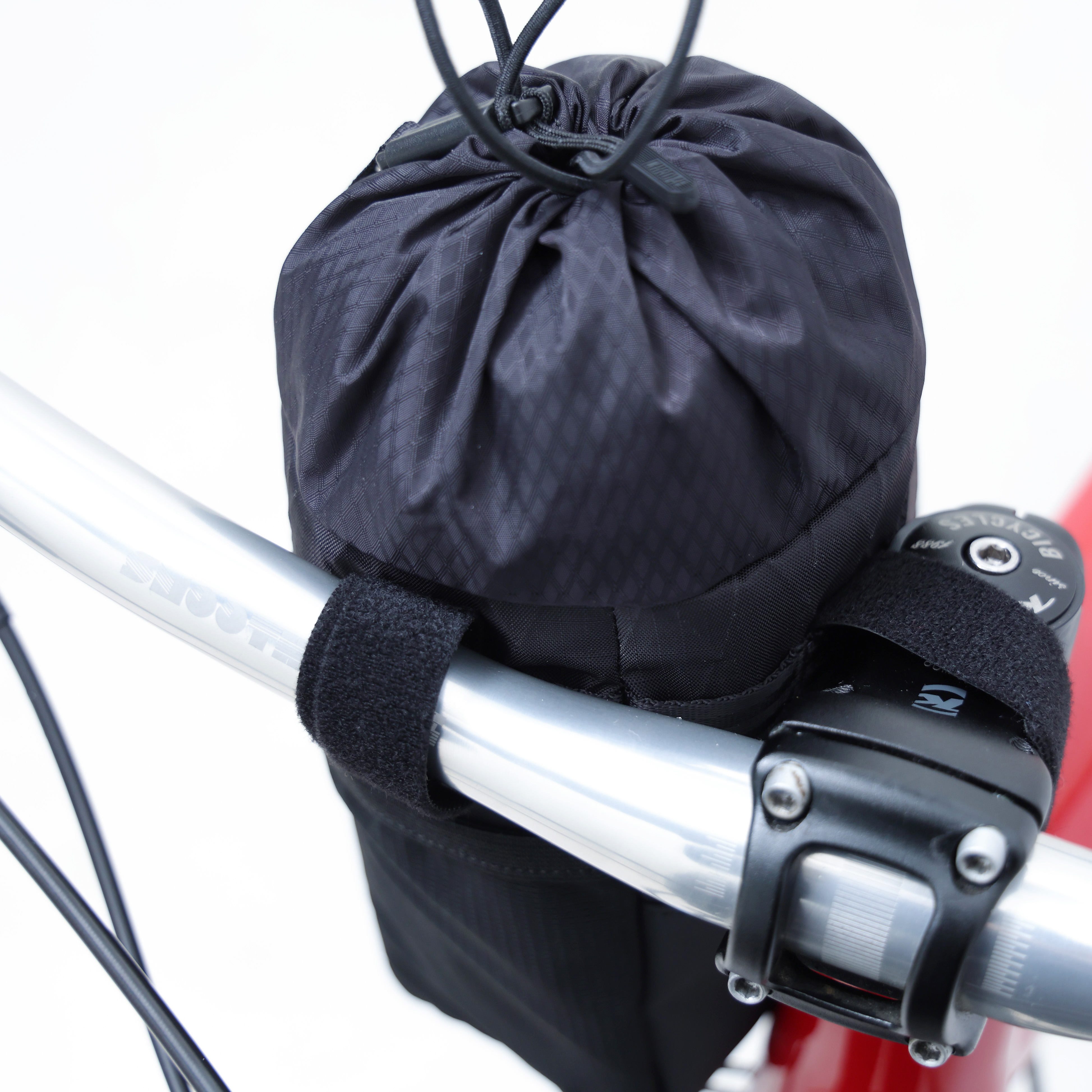 ウォーターボトルやスマートフォン、バイクロックを収納できるハンドルバッグ