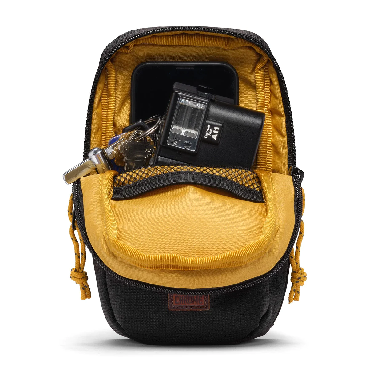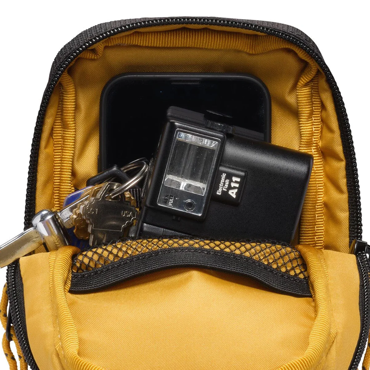 スマートフォン対応のフロントポケットは、フラップでしっかり保護されています。