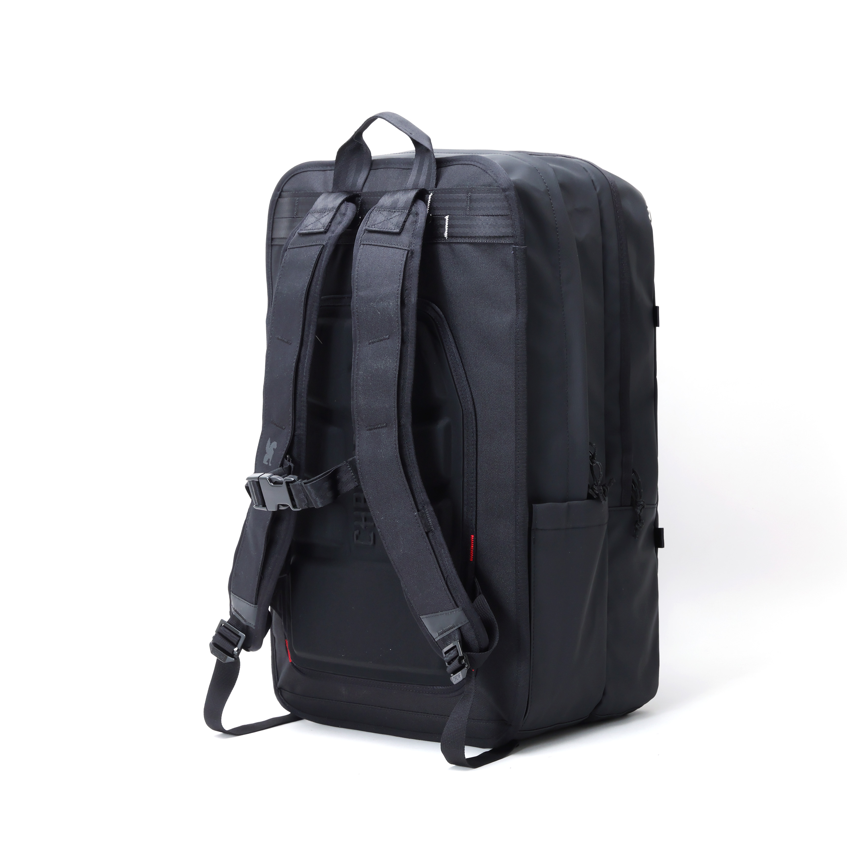 フロントパネルには取り外しができるデタッチャブルストラップを採用。シューズ・ウェア・ヘルメット、さらにはスケートデッキなど収まりきらない荷物を収納可能。